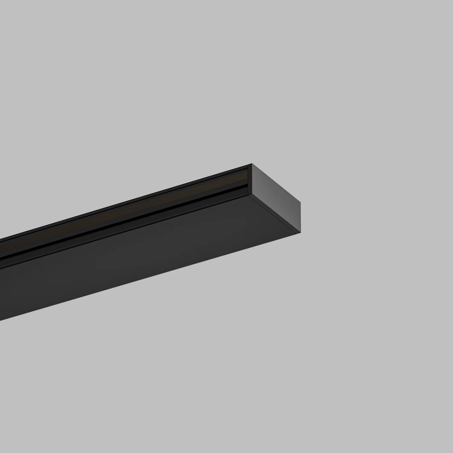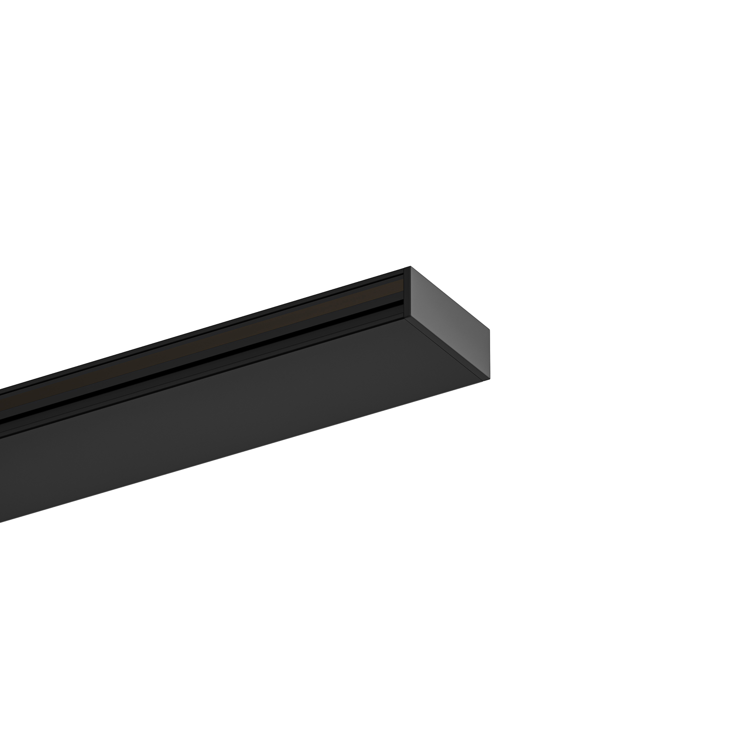 Корпус выполнен из алюминия и окрашен в черный цвет. Черный трек — частый выбор для современных интерьеров (лофт, минимализм, контемпорари), где он может либо поддерживать черные акценты (профили, фурнитуру), либо работать как графичная линия на светлом потолке/стене.
