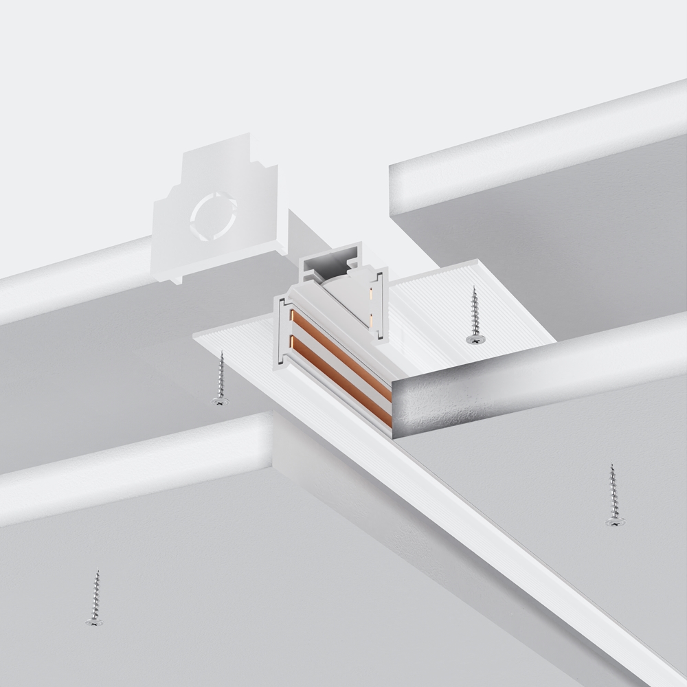 Шинопровод спроектирован для бесшовной интеграции в подвесные системы из гипсокартона.