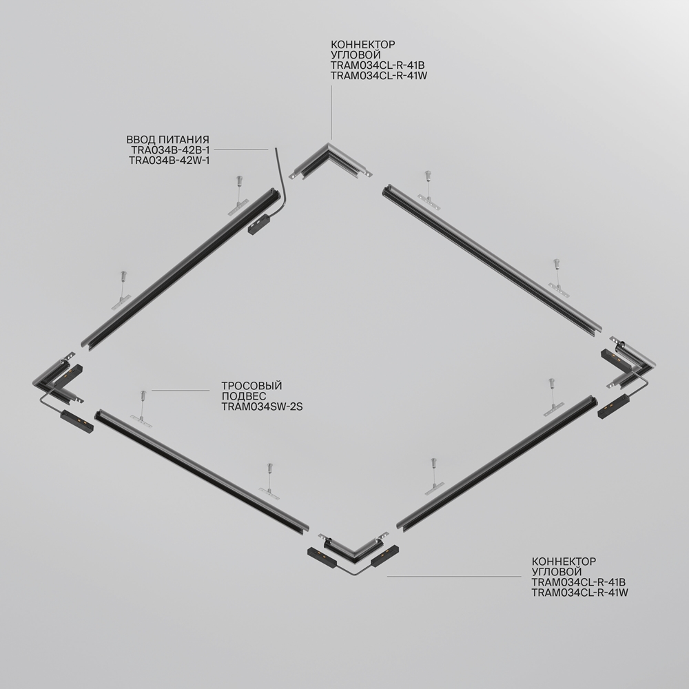 TRXM034-R-412W рассчитан на накладной и подвесной монтаж. Его можно закрепить непосредственно на потолке или стене, либо использовать подвесы, формируя ровные линии или многоуровневые конструкции. Круглое сечение особенно удобно для подвесного монтажа: шинопровод выглядит аккуратно и со стороны, и снизу, поддерживая эстетику открытого пространства.