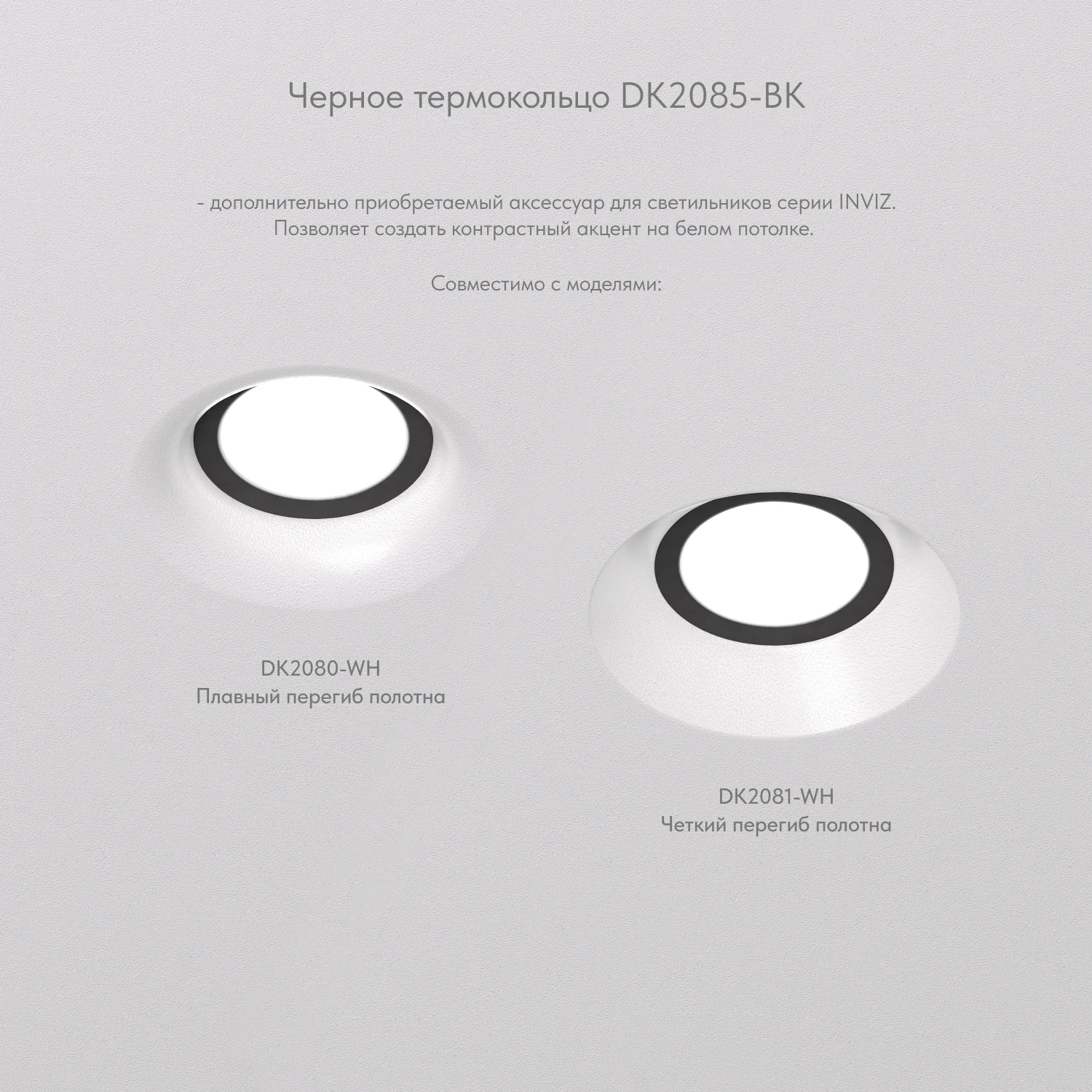 Модель DK2085-BK разработана специально для работы со встраиваемыми светильниками серии INVIZ и полностью совместима с популярными моделями DK2080-WH и DK2081-WH. При установке кольцо аккуратно обрамляет световой вырез, помогает визуально «собрать» группу светильников в единую композицию и добавить тому самому «дорогому» ощущению дизайна, которое так ценится в современных интерьерах.