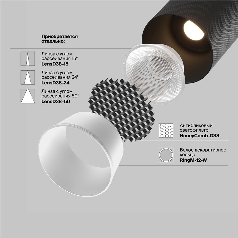 Угол рассеивания 36° делает светильник акцентным: он формирует направленный