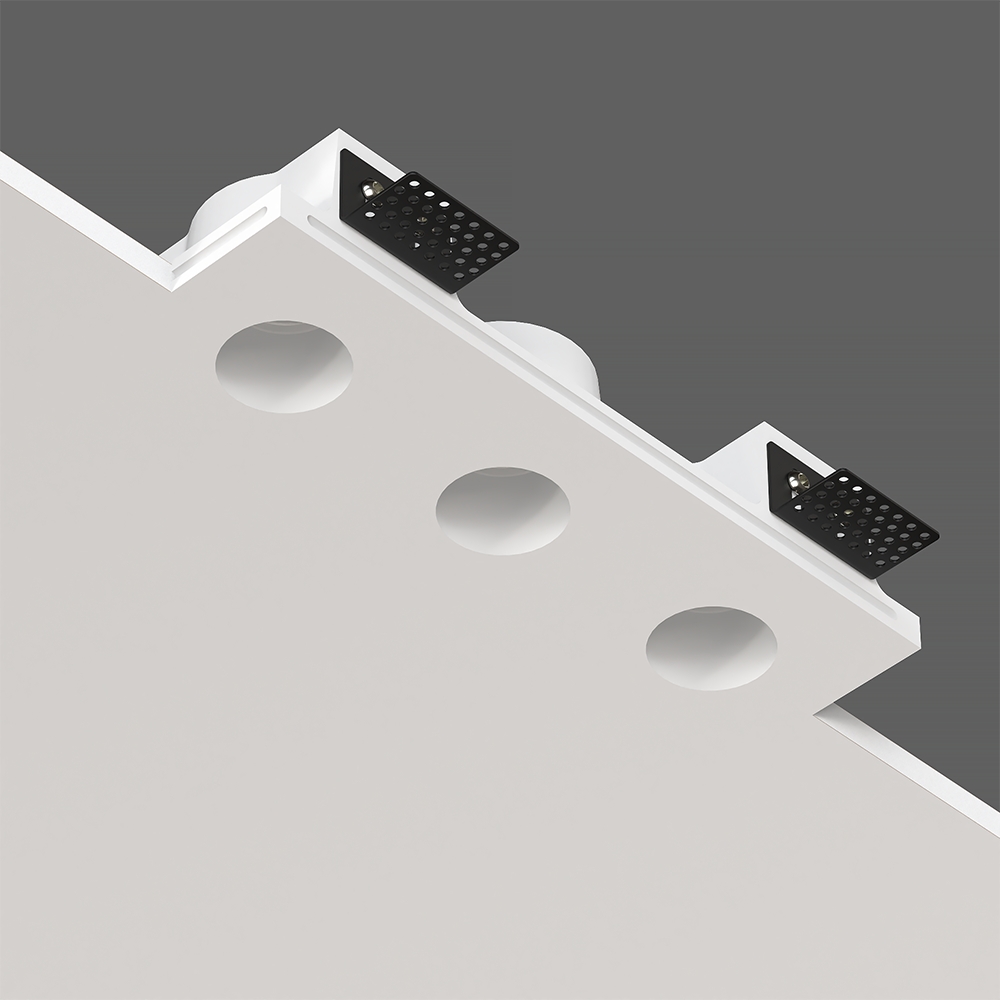 Stellanova QUASAR 40 TRIO — это тройной встраиваемый гипсовый светильник, который объединяет чистую геометрию, архитектурный подход к освещению и максимальную гибкость для дизайнера. Он устанавливается в потолки из гипсокартона и после шпаклёвки и покраски становится визуально единым целым с поверхностью, не утяжеляя пространство и не перетягивая на себя внимание. В результате вы получаете аккуратную световую линию из трёх круглых источников света, которые работают как единая композиция.