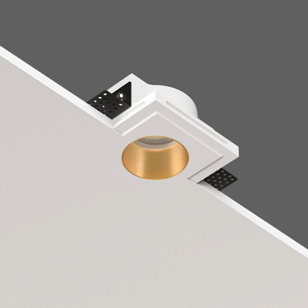 Гипсовый встраиваемый светильник Stellanova QUASAR 55 BRASS — это компактный архитектурный акцент, созданный для тех, кто ценит продуманный минимализм, чистый потолок и благородные детали. В нём соединены строгая геометрия, аккуратная встройка и тёплый блеск вставки из 100% латуни, которая работает как маленькое ювелирное украшение интерьера.