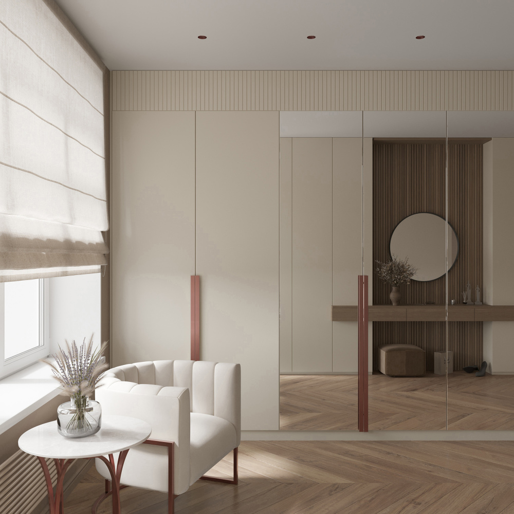 Stellanova QUASAR 55 FLAT COPPER хорошо работает как в одиночных сценариях (акцент над тумбой, креслом, нишей), так и в линейных или матричных композициях: ряды точек вдоль коридора, симметричная раскладка в гостиной, комбинированное освещение кухни-гостиной с зонами и акцентами. Медная вставка особенно эффектно смотрится в проектах, где используются металлические детали — смесители, ручки, карнизы, элементы мебели.
