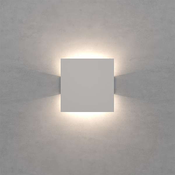 Белый цвет непрозрачной передней части светильника почти сливается с белым светом стены. При размещении светильника на темной лестничной ступеньке «квадрат» светильника можно разместить одной из его диагоналей параллельно поверхности ступеньки.